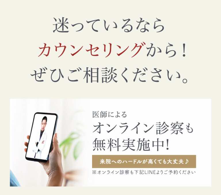 カウンセリングは無料で、施術を無理にお勧めすることはありませんのでご安心ください。